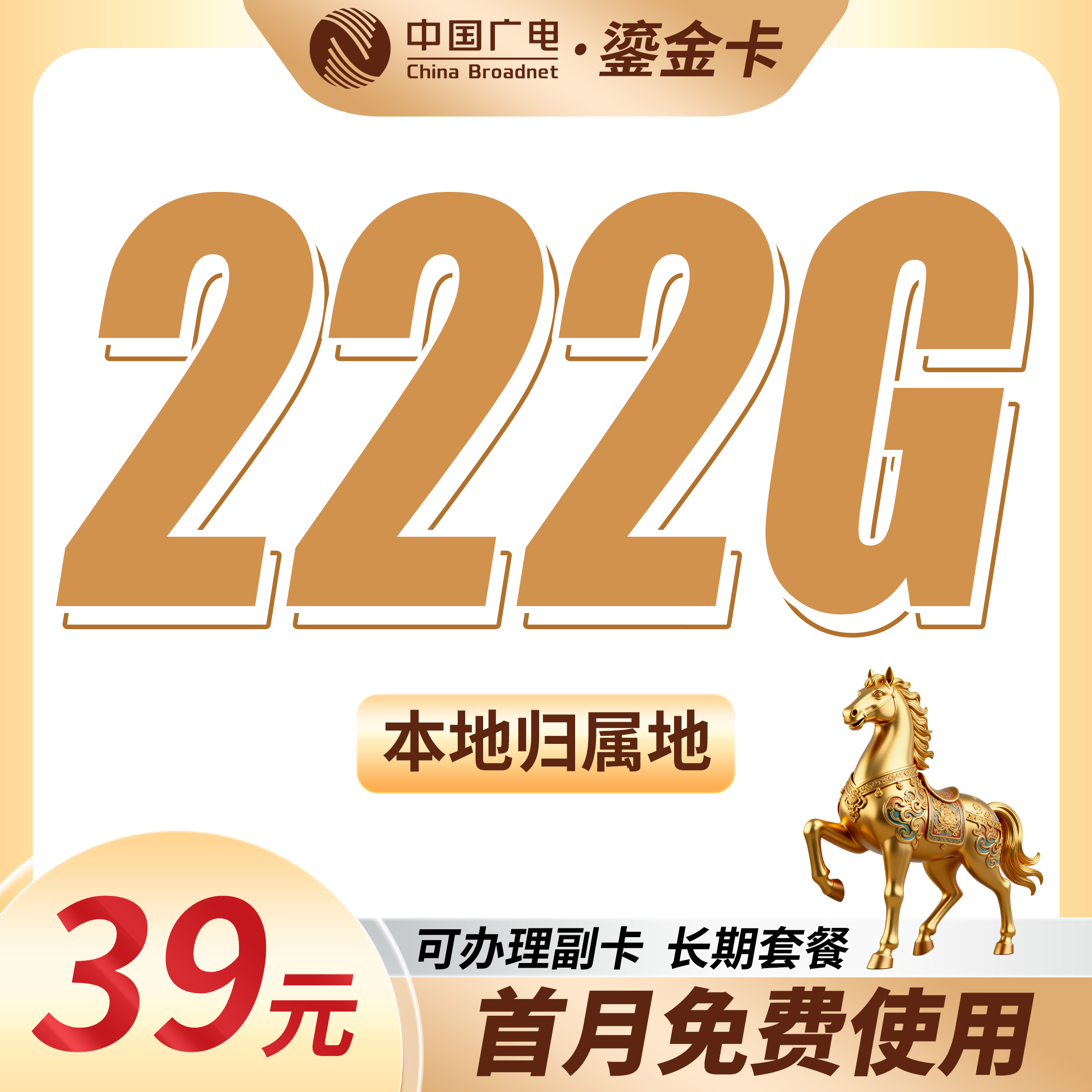 广电鎏金卡39元222G通用流量+本地归属地+可发全国!